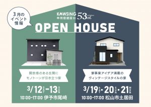 3月の完成見学会のご案内です。 今月は完全注文住宅の見学会を2週連続で開催します! 両方違った魅力が詰まったお … 続きを読む 3月のイベント情報!!