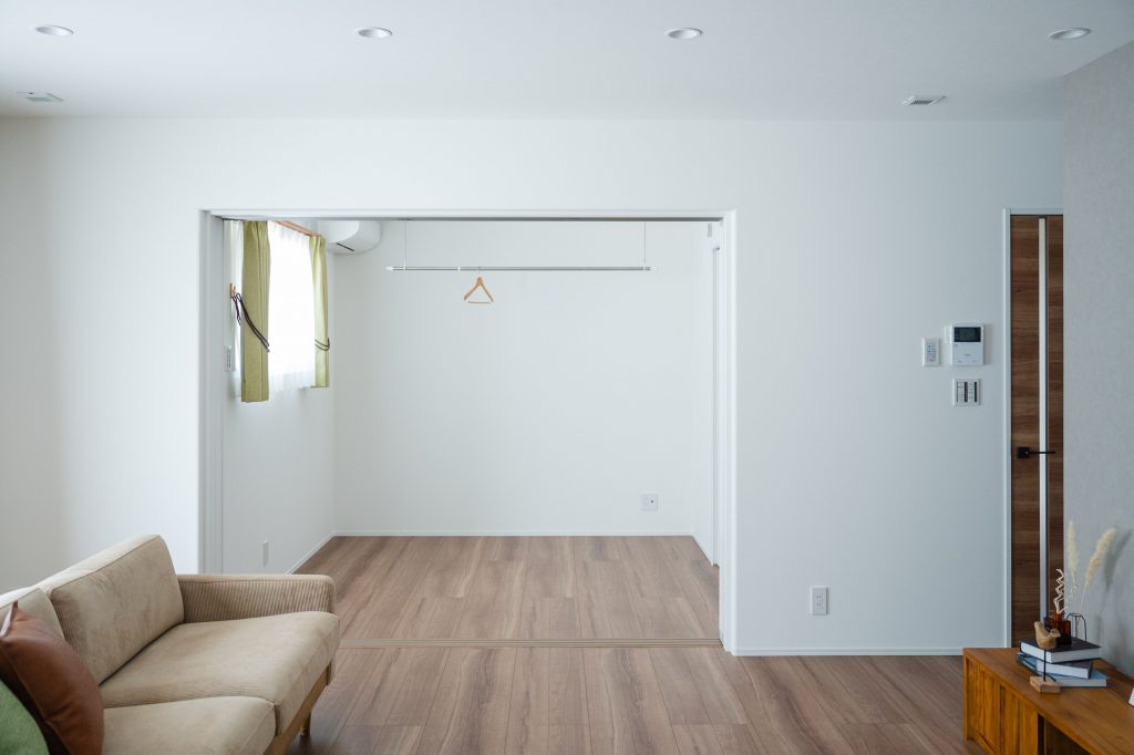 和室や洋室、2階ホールなど、空いている空間にハンガーパイプを設けておくと、雨の日の洗濯物も安心。