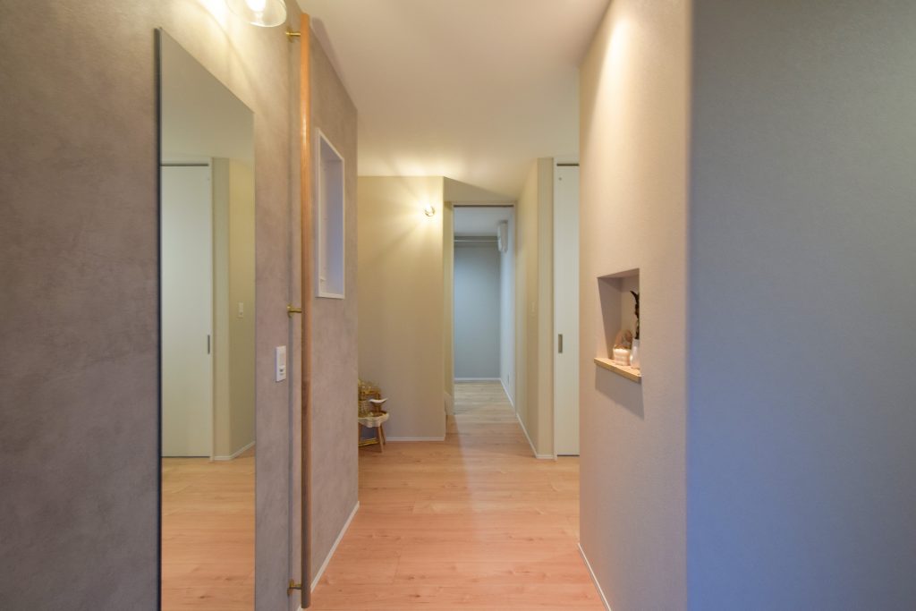 玄関からリビングまでの動線上に収納を配置したお住まいでは、「家族みんなが自然に片付けてくれるようになった」と好評です💡