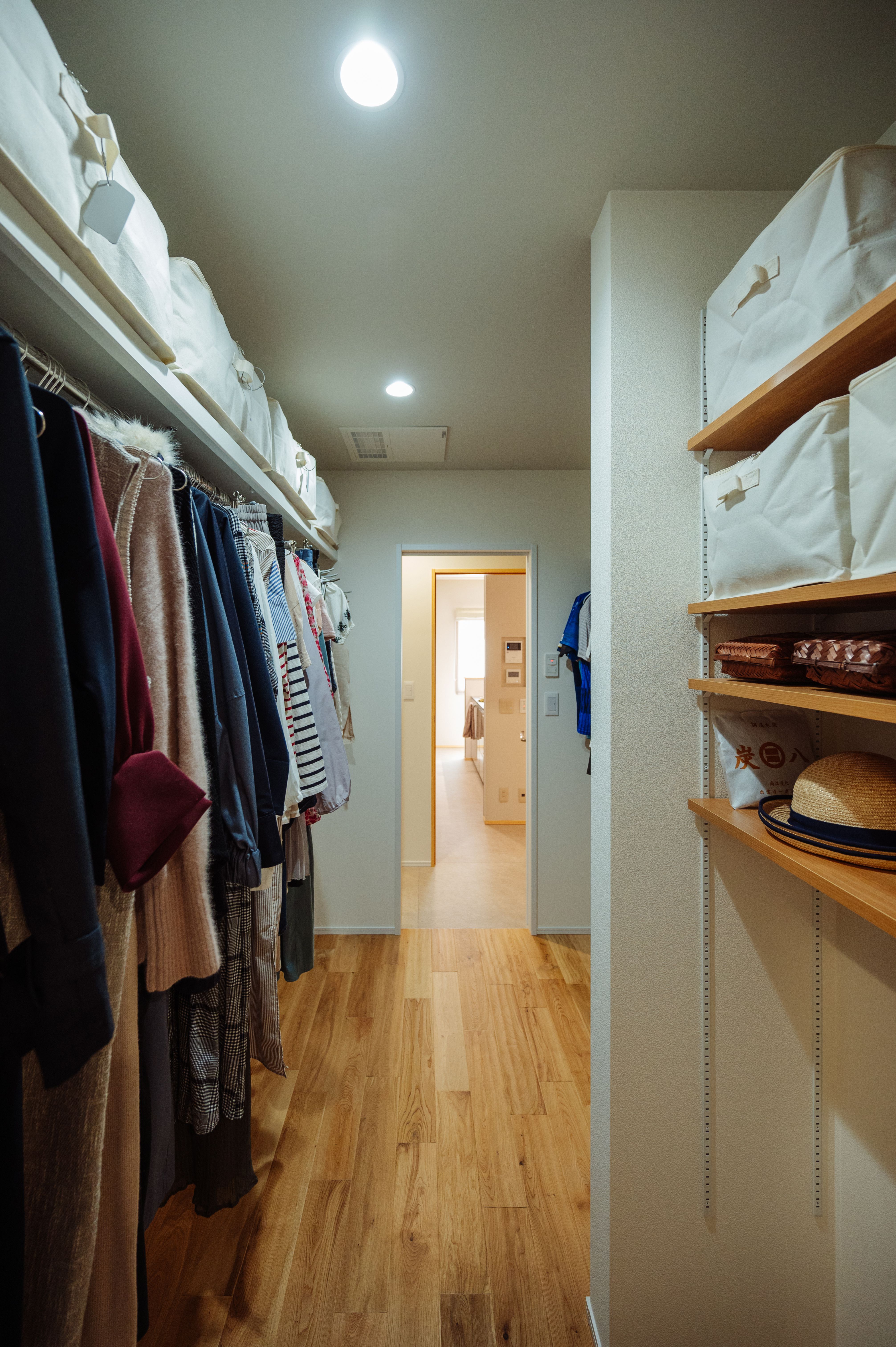 さらに、通り抜けができるファミリークローゼットが家の中心にあることで、身支度・帰宅後の片付けが一つの流れで完結。
