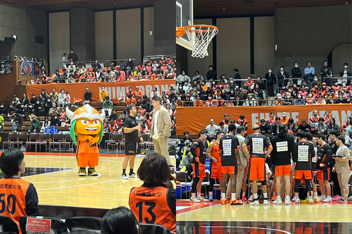 今年、「愛媛オレンジバイキングス」さんの練習地になっている旧中山高校の体育館の補修を河窪建設でさせていただき、パートナーに!