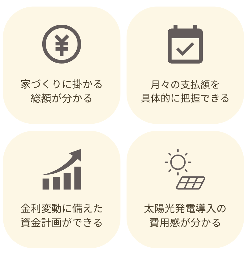 ヒアリングを通して、家づくりにかかる費用を具体的にシミュレーションをします。