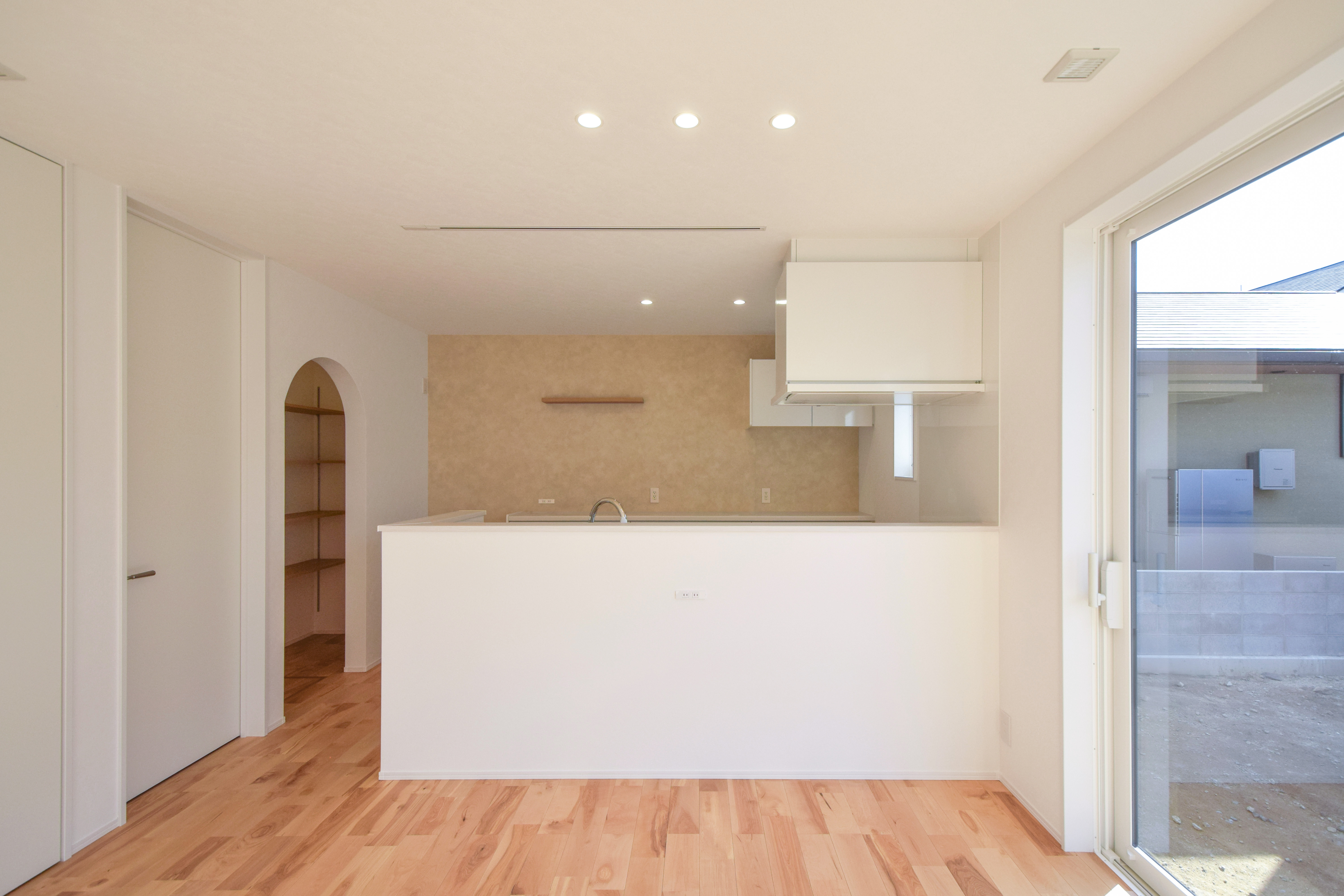 玄関やキッチン横のパントリーなど、暮らしの動線に合わせて収納を配置。